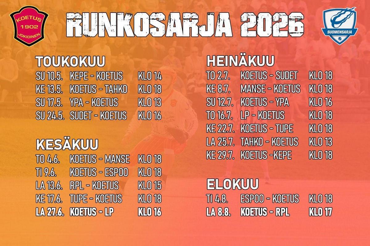 Mielenkiintoiset ja kuumat paikallisottelut pelataan Jokioisten hornankattilassa 27.6. Koetus - LP ja 8.8. Koetus - RPL Näitä pelejä et missään nimessä halua missata.